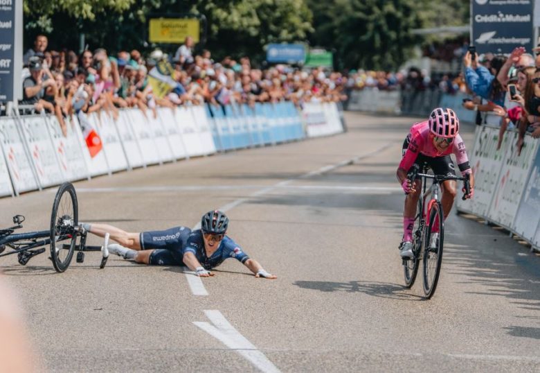 Carthy chute dans la descente, Cepeda s'impose de justesse, Storer tombe après la ligne !