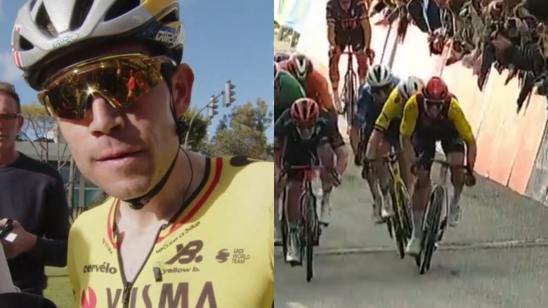 Tour de l'AlgarveÀ l'occasion de cette 4e étape du Tour de l'Algarve entre Albufeira et Faro (175,2 km), ce sont, à l'image de la veille, les sprinteurs qui se sont disputés la victoire, avec une arrivée qui convenait aux puncheurs-sprinteurs. C'est le Belge de la formation Cofidis, Milan Fretin, qui a devancé le maillot vert Jordi Meeus (Red Bull-BORA-hansgrohe) et Filippo Ganna (INEOS Grenadiers) pour remporter sa deuxième victoire de la saison, après sa victoire lors de la Classique d'Almeria. L'un des grands favoris ce samedi, Wout van Aert, n'a pas pu faire mieux que 7e place lors de ce sprint en bosse. Le Belge de la formation Visma | Lease a Bike s'est exprimé au micro d'Eurosport après la course.