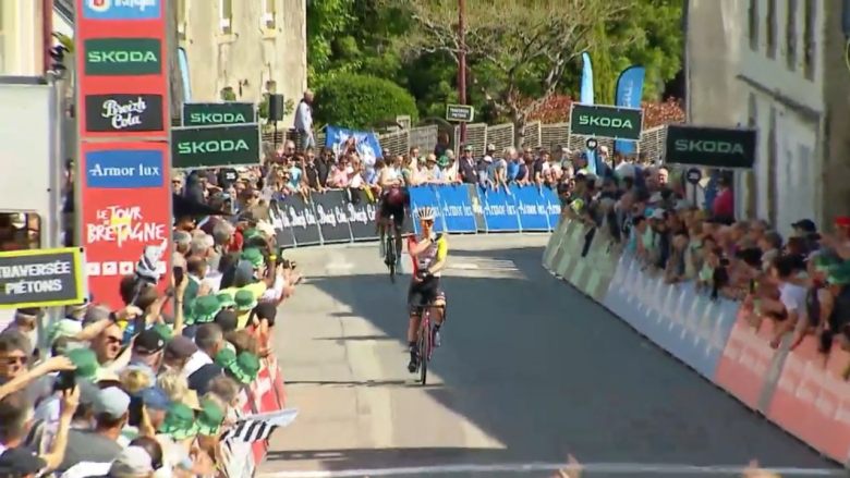 Tour de BretagneAprès la victoire surprise d'Eliott Boulet (Conti Groupama-FDJ) au sprint la veille, ce sont à nouveau des coureurs échappés qui se sont disputés la victoire ce lundi à Landévant, après une grosse journée à batailler sur un parcours exigeant. Ronan Augé (CIC-U Nantes), piégé dans le peloton, a perdu son maillot de leader. Le Norvégien Felix Orn-Kristoff (Wanty-Nippo-ReUz), 19 ans et demi-frère du célèbre Alexander, s'est imposé devant l'Australien Jackson Medway (Tudor Pro Cycling) après s'être extirpé à deux d'un solide groupe de tête constitué de neuf coureurs dans le dernier tour du circuit tracé à Landévant.