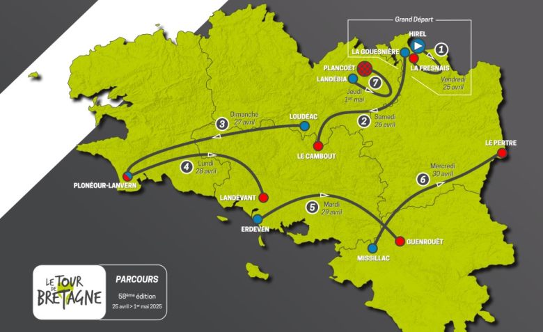 Le tracé du Tour de Bretagne 2025... du 25 avril au 1er mai