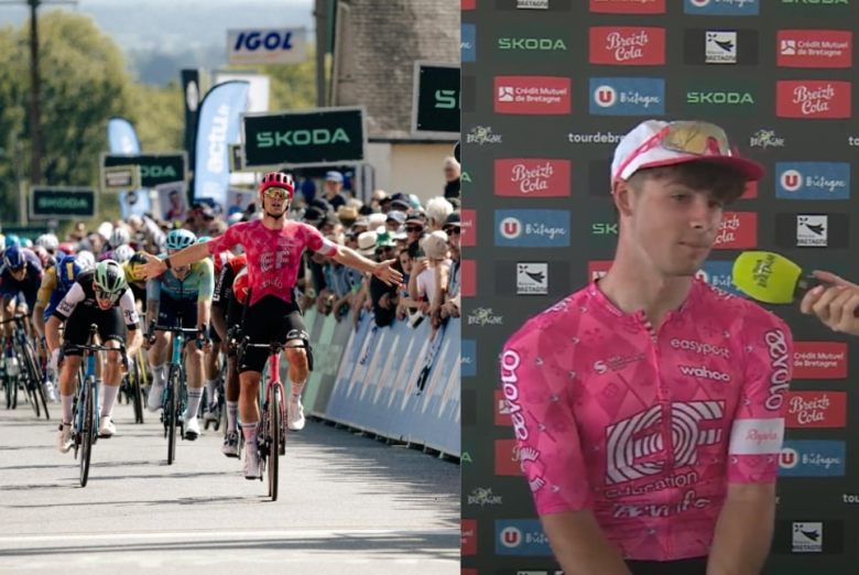 Tour de BretagneSuperbe performance de Noah Hobbs (EF Education–Aevolo) ! Le coureur britannique de 20 ans a remporté ce mercredi la 6e étape du Tour de Bretagne, sa deuxième de la semaine après celle samedi lors de la 2e étape. Après une journée plutôt calme, il a devancé au sprint deux Français, Aubin Sparfel (Decathlon AG2R La Mondiale Development) et Emmanuel Houcou (ARKEA-B&B HOTELS Continentale). Le jeune sprinteur poursuit son très bon début de saison, après notamment son carton plein lors de la Volta ao Alentejo, où il avait remporté 2 victoires d'étape et les 3 maillots distinctifs (général, sprint, meilleur jeune).
