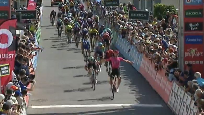Tour de BretagneNoah Hobbs est LE sprinteur de ce Tour de Bretagne ! Déjà vainqueur samedi, le Britannique de la formation EF Education - Aevolo a récidivé ce mercredi sur la 3e étape entre Missillac et Le Pertre. Malgré une journée marquée par des attaques à répétition, la gagne s'est finalement jouée au sprint. Contraint de lancer de loin sur cette arrivée en faux-plat montant, Hobbs a malgré tout réussi à venir s'imposer. Encore une fois impressionnant, il signe à cette occasion son 5e succès de la saison. Derrière, les Français Aubin Sparfel (Decathlon AG2R La Mondiale Development) et Emmanuel Houcou (Arkéa-B&B Hotels Continentale) sont venus chercher les 2e et 3e places. Felix Orn-Kristoff (Wanty-Nippo-ReUz) conserve lui la tête du classement général.