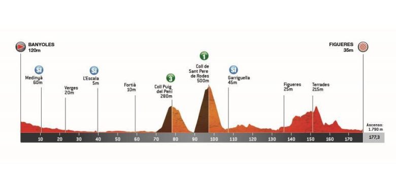 Mardi 25 mars - Étape 2 : Banyoles - Figueres, 177,3 km (départ 12h55, arrivée vers 17h00)