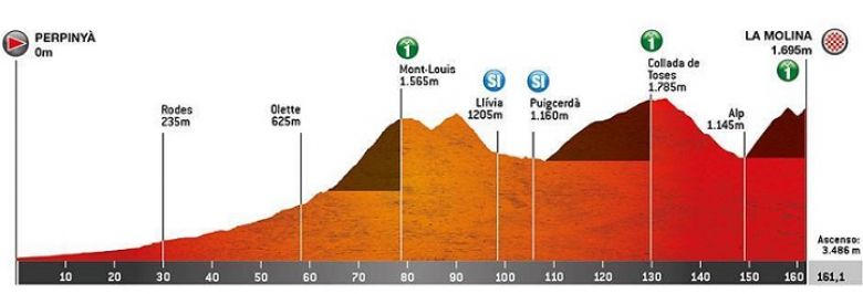 Perpignan – La Molina, 161,1 km (départ réel à 12h50, arrivée vers 16h55)