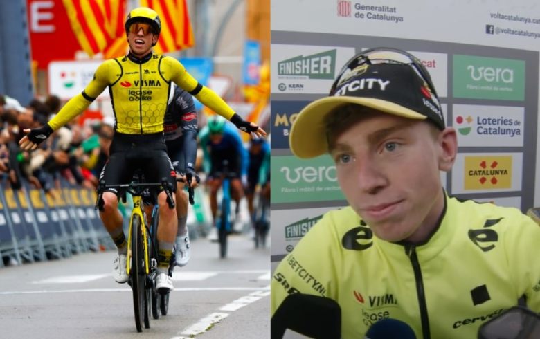 Tour de CatalogneQuelle fin de course ! Cette première étape du Tour de Catalogne a offert lundi une arrivée et un dernier kilomètre exceptionnels. Le Britannique Matthew Brennan (Team Visma | Lease a Bike), au bout de la dernière ligne droite, a devancé sur la ligne Kaden Groves (Alpecin-Deceuninck) et son coéquipier Tibor Del Grosso (Alpecin-Deceuninck), auteur d'un joli numéro en solitaire sur les trois derniers kilomètres. Brennan, âgé de 19 ans seulement, s'offre ainsi sa 4e victoire de la saison (et la 4e consécutive !), lui qui reste sur des succès au Tour des 100 Communes, au GP Lillers mais surtout au GP de Denain jeudi dernier.