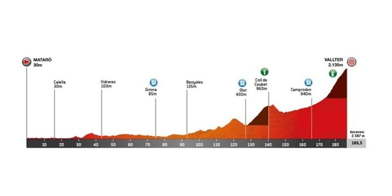 Mataró – Vallter / Setcases (Vall de Camprodon), 186,5 km (départ réel à 11h50, arrivée vers 16h35)