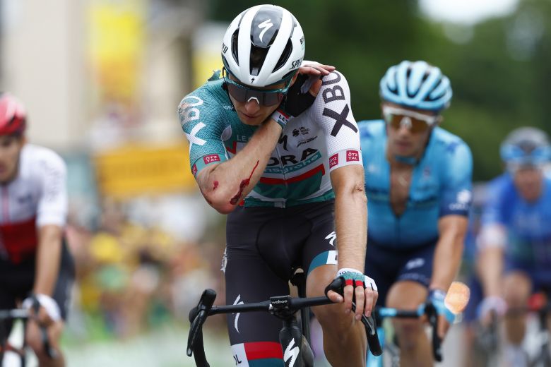 Tour de FranceAleksandr Vlasov et son équipe BORA-hangsrohe se sont fait une belle frayeur dans le final de la 6e étape du Tour de France. Le coureur russe n'a pu éviter une chute dans un virage à droite à 9 kilomètres de l'arrivée à Longwy. Rapidement remonté sur son vélo, lui et ses coéquipiers ont alors commencé une véritable course poursuite pour limiter les dégâts. Finalement 16e à 5" du vainqueur Tadej Pogacar (UAE Team Emirates), le grimpeur de 26 ans pouvait souffler après avoir éviter le pire. Victimes de quelques égratignures, il s'est confié auprès de sa formation sur cette fin d'étape stressante mais finalement sans grosses conséquences.