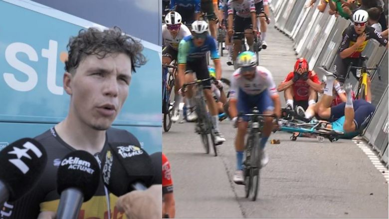 Arnaud De Lie a pesté contre l'UCI à l'arrivée de la 13e étape : "C’est simple, maintenant, c’est la mode de regarder derrière soi. Il y en a encore un qui fait la faute et ça donne un gros carnage. On peut juste lui dire merci. Il y a un coureur qui fait la faute, qui regarde derrière lui et il fait une vague. Je ne sais pas qui il touche. Je ne tombe pas, je suis déjà très content. Mais c’est chaque fois pareil et l’UCI ne fait rien."