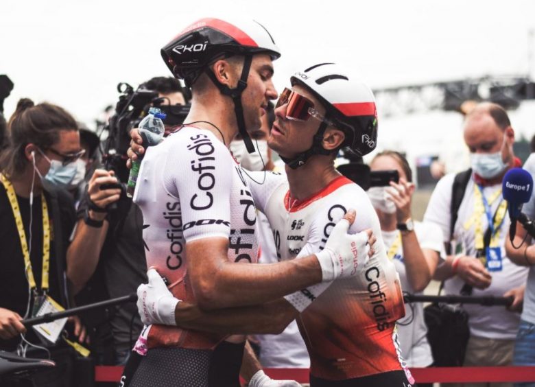 Tour de FranceUn nouveau résultat probant pour la formation Cofidis ! Bryan Coquard a poursuivi le début de Tour de France euphorique des hommes de Cédric Vasseur en venant décrocher une belle 4e place lors du sprint final à Nogaro, terme de la 4e étape mardi. Après un beau travail de ses lanceurs attitrés Alexis Renard et Axel Zingle - ce dernier ayant malheureusement été pris dans une des nombreuses chutes de ce final chaotique sur le circuit automobile Paul Armagnac - le Nazairien a pu se mêler à la lutte pour le podium mais a finalement été devancé par Jasper Philipsen (Alpecin-Deceuninck), Caleb Ewan (Lotto Dstny) et Phil Bauhaus (Bahrain Victorious). Une performance qui a malgré tout satisfait le sprinteur tricolore après l'arrivée.