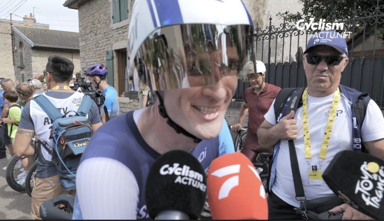 Tour de FranceSur la ligne, Derek Gee signe la 14e place du contre-la-montre au programme de la 7e étape du Tour de France. Le Canadien de la formation Israel-PremierTech termine à 1'17" du vainqueur du jour Remco Evenepoel (Soudal Quick-Step). Depuis le début de la Grande Boucle, le coureur de 26 ans, 3e du Critérium du Dauphiné cette saison, est satisfait de sa forme. Et se sent monter en puissance. "Je pense que la course commence vraiment à partir de là", confie-t-il à notre micro après l'arrivée.