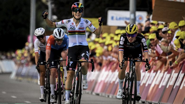 Tour de France FemmesLe Tour de France Femmes avec Zwift se poursuit et ce mercredi, à l'occasion de la 5e étape entre le Futuroscope et Guéret, nous avons assisté à la première explication entre les favorites. Et c'est Kim Le Court Pienaar qui s'est imposée ! La Mauricienne de l'équipe AG Insurance-Soudal s'est imposée au sprint dans un petit groupe de 7 coureuses et s'empare par la même occasion du Maillot Jaune ! Dans ce groupe, les pricnipales favorites étaient présentes, y compris Pauline Ferrand-Prévot (Visma | Lease a Bike), qui a pris la 5e place.