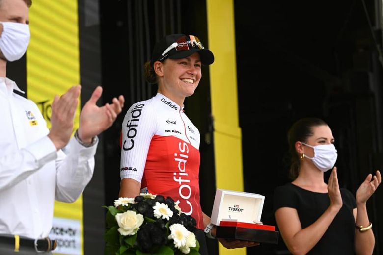 Tour de France FemmesLa Française Victoire Berteau s'est fait un nom sur la cinquième étape du Tour de France Féminin. La Française de l'équipe Cofidis s'est glissée dans l'échappée matinale avec trois autres coureuses et a été particulièrement active dans le final. Objectif : chercher le dossard rouge de la combativité. Mais quand on a encore plus de trente secondes d'avance à cinq kilomètres du but, on veut plus. Malheureusement, la rouleuse a été reprise dans les derniers kilomètres, regardant de loin Lorena Wiebes (Team DSM) s'adjuger une deuxième victoire d'étape. Pourtant, le sourire est aux lèvres après l'arrivée, avec un maillot flanqué de deux dossards vermillons.