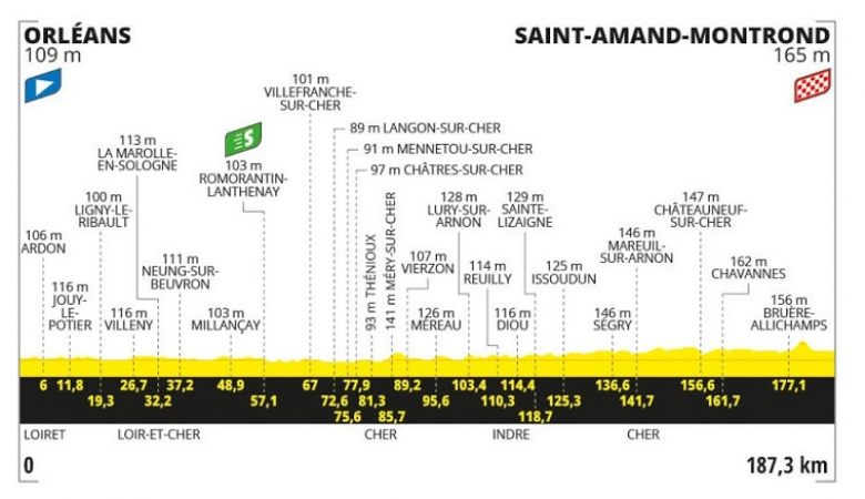Mardi 9 juillet : Orléans - Saint-Amand-Montrond / 187,3 km (départ réel à 13h25, arrivée vers 17h35)