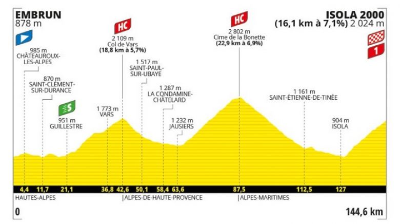 Vendredi 19 juillet : Embrun - Isola 2000 / 144,6 km (départ réel à 12h30, arrivée vers 16h45)