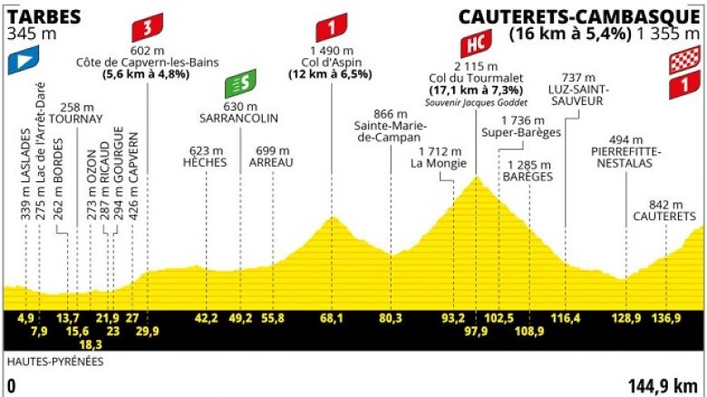 Tour de FranceLes Pyrénées, acte deux ! Après le festival que nous ont proposé les coureurs ce mercredi entre Pau et Laruns, une nouvelle grande bagarre en haute montagne est attendue jeudi à l'occasion de la 6e étape du Tour de France, avec un menu sur le papier encore plus copieux ! Disputée sur près de 150 kilomètres, cette courte journée débutera par la Côte de Capvern-les-Bains (5,6 km à 4,8%), qui pourrait permettre à une belle échappée de grimpeurs de prendre les devants. Le célèbre et majestueux enchaînement des Cols d'Aspin (12 km à 6,5%) et du Tourmalet (17,1 km à 7,3%) mènera ensuite le peloton - ou ce qu'il en reste - jusqu'au pied de l'ascension finale vers Cauterets-Cambasque (16 km à 5,4%). Une première arrivée au sommet très irrégulière qui promet du spectacle.