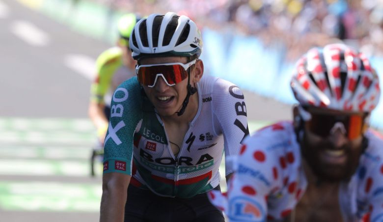 Tour de FranceC'est peu dire qu'on a beaucoup vu le maillot des BORA-hangsrohe dans le final de la 14e étape à Mende ce samedi. Avec trois coureurs dans l'échappée du jour - Lennard Kämna, Felix Grossschartner et Patrick Konrad - la formation allemande avait de quoi jouer la victoire au sommet de la montée de la côte de la Croix Neuve / Montée Jalabert. Mais les trois coéquipiers, encore affaiblis par un coup de froid attrapé dans les Alpes, ont finalement été un peu juste pour contester la suprématie d'un Michael Matthews (BikeExchange-Jayco) survolté. Ce beau tir groupé (5, 7 et 8 sur la ligne) reste malgré tout positif à l'approche d'une dernière semaine qui devrait convenir à Lennard Kämna et consort.