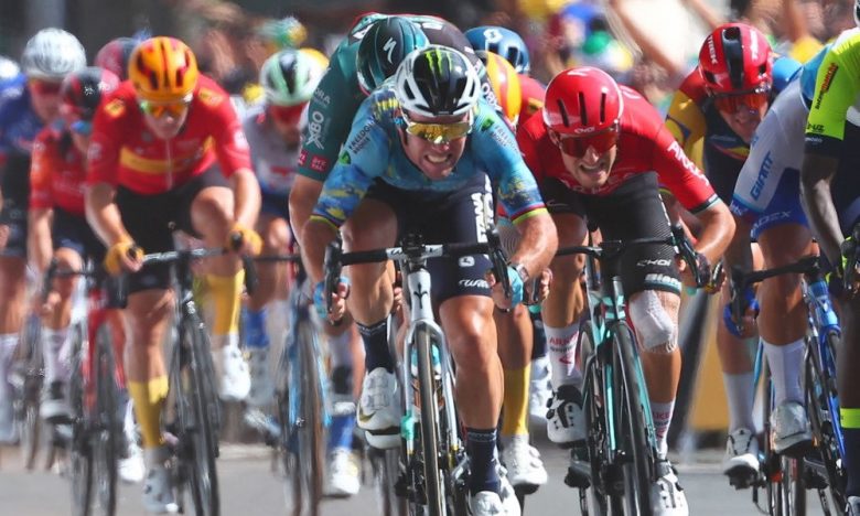 Tour de France6e à Bayonne, 5e à Nogaro... Mark Cavendish (Astana Qazaqstan) s'est encore plus rapproché de la victoire et du fameux record sur cette 7e étape du Tour de France. Avec cette arrivée à Bordeaux, le Cav a échoué à la 2e place, à seulement quelques mètres du vainqueur du jour Jasper Philipsen (Alpecin-Deceuninck). Pas idéalement placé à 300 mètres de la ligne, le Britannique a lancé son sprint de très loin, dépassant tous ses concurrents à pleine vitesse, avant finalement de se faire dépasser par Philipsen dans les derniers mètres.
