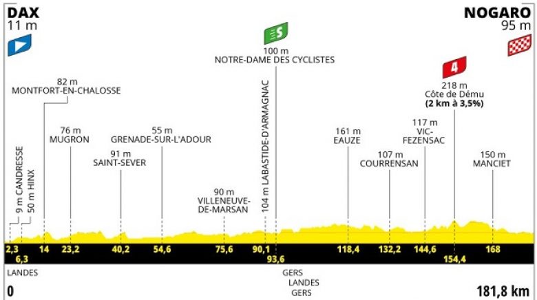 - Mardi 4 juillet - Étape 4 : Dax - Nogaro, 181,8 km (départ réel à 13h20, arrivée vers 17h20)