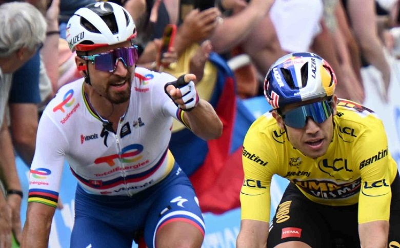 Tour de FrancePeter Sagan l'avait mauvaise ce dimanche après la 3e étape du Tour de France 2022 ! En lice pour la victoire à Sonderborg mais finalement quatrième derrière Dylan Groenewegen (Team BikeExchange-Jayo), Wout Van Aert (Team Jumbo-Visma) et Jasper Philipsen (Alpecin-Deceuninck), le Slovaque en voulait au maillot jaune, avec qui il a été au coude-à-coude dans les 100 derniers mètres et qu'il a accusé de l'avoir gêné. Après la ligne, l'ancien triple champion du monde a même pointé du doigt le Belge de façon véhémente, avant d'être plus mesuré au moment de commenter cette fin d'étape.