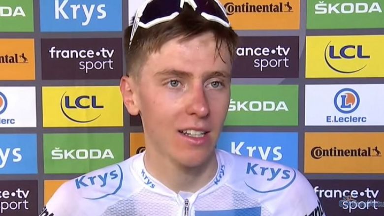Tadej Pogacar après sa victoire sur la 17e étape du Tour