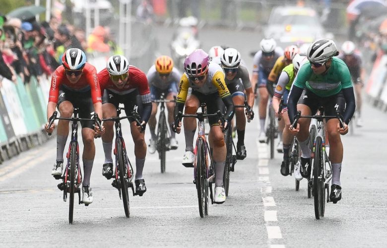Tour de Grande-BretagneUn final rocambolesque et probablement du jamais-vu à ce niveau de compétition ! La 4e et dernière étape du Tour de Grande-Bretagne Femmes, disputée dans des condtions très pluvieuses et sur près de 100 kms entre Manchester et Leigh, a offert un scénario improbable marquée par l'énorme loupé des coureuses du Team SD Worx-Protime dans les derniers mètres de course. Déjà lauréates des trois premières étapes et encore clairement au-dessus du lot ce dimanche, Lotte Kopecky et Lorena Wiebes ont tenté de faire gagner leur coéquipière Christine Majerus, ralentissant volontairement dans le sprint en petit comité qui a conclu cette dure journée pour laisser passer la championne du Luxembourg. Mais cette dernière a levé les bras un peu trop tôt, trop sûre de son succès, et s'est fait sauter sur la ligne par Ruby Roseman-Gannon (Liv AlUla Jayco), qui n'en demandait pas tant !