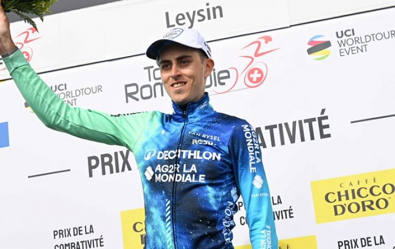 Tour de RomandieQuelle 4e étape du Tour de Romandie réalisée par Clément Berthet ! En tête de la course pendant plus de 80 kilomètres, dont la moitié réalisé tout seul, le grimpeur jurassien a considérablement animé cette étape reine de la course helvète. Repris à 5 bornes de l'arrivée par le groupe des favoris, le coureur de l'équipe Decathlon AG2R La Mondiale Team n'a pas été récompensé de ses efforts au niveau du classement (29e à 3'49"), mais il a eu l'honneur de monter sur le podium afin de recevoir le prix de la combativité. "On avait prévu d'être offensifs aujourd'hui (samedi) et ça avait bien commencé avec Dorian (Godon) qui était dans la première échappée", commence-t-il par expliquer au micro d'Eurosport.