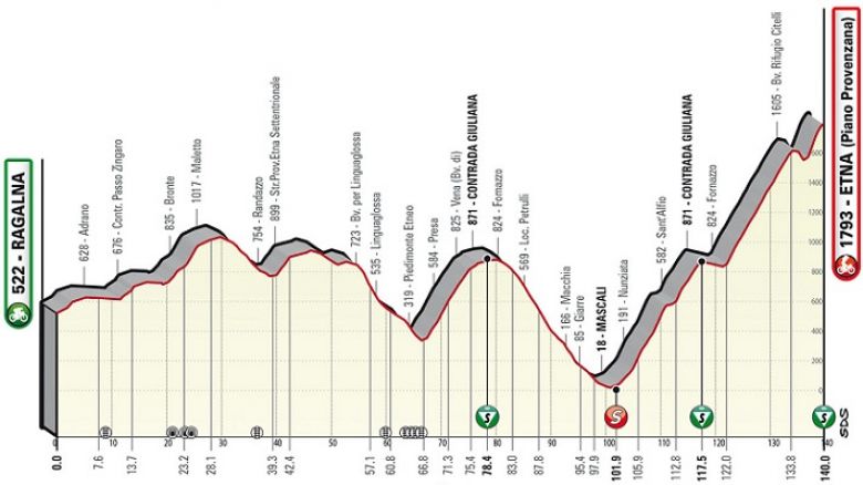 Tour de SicileC'est l'étape reine de ce Tour de Sicile 2022 ! Entre Ragalna et l'Etna, 140 kilomètres difficiles attendent les coureurs, trois ascensions répertoriées jalonnant le parcours : la montée de Contrada Giuliana, à gravir à deux reprises et par deux versants différents, puis l'ascension de l'Etna et ses 17,4 kilomètres à 7,3% de moyenne. Les favoris du classement général vont s'expliquer lors de cette dernière étape, et on attend notamment une bagarre entre Damiano Caruso (Italie), Vincenzo Nibali (Astana Qazaqstan Team) et Domenico Pozzovivo (Intermarché-Wanty-Gobert Matériaux). On surveillera également Kenny Elissonde (Trek-Segafredo) et Jefferson Alexander Cepeda (Drone Hopper-Androni Giocattoli), deux grimpeurs qui pourraient s'illustrer lors de cette dernière journée de course. Quant à Fran Miholjevic (Cycling Team Friuli ASD), leader du classement général depuis son exploit réalisé jeudi, on attend avec impatience de voir ce qu'il peut faire sur une telle étape.