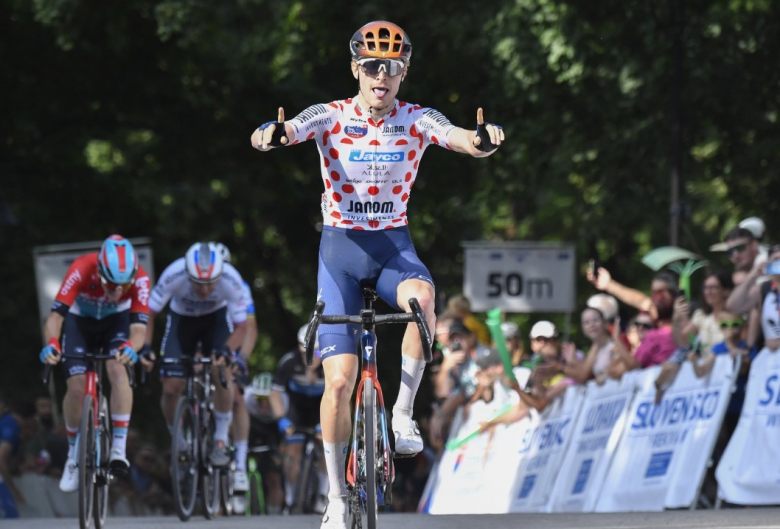 Tour de SlovaquieAprès le contre-la-montre par équipes inaugural remporté par la Team Jayco AlUla la veille au soir, place à la 2e étape du Tour de Slovaquie ce jeudi, tracée entre les villes de Nitra et Hlohovec sur 192 kms. A l'issue d'un parcours vallonné en milieu d'étape mais plat dans sa partie finale, c'est sans surprise un peloton groupé qui s'est présenté au pied de la courte bosse (700 mètres à 6,7%) au sommet de laquelle était jugée l'arrivée. Un final explosif et pour puncheurs qui a souri à Anders Foldager ! Maillot à pois sur le dos, le jeune Danois a parfaitement géré cet effort brutal pour offrir à la Team Jayco AlUla son 2e succès en deux jours, decrochant par la même occasion, à 22 ans, son tout premier bouquet chez les professionnels.