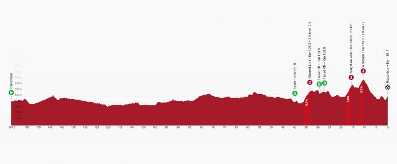 Mardi 11 juin - Étape 3 : Steinmaur - Rüschlikon / 161,7 km (Dénivelé : 1 974 m - départ 13h10, arrivée vers 17h00)