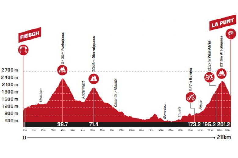 Jeudi 15 juin - étape 5 : Fiesch - La Punt / 211 km (départ réel à 10h43, arrivée vers 16h35)