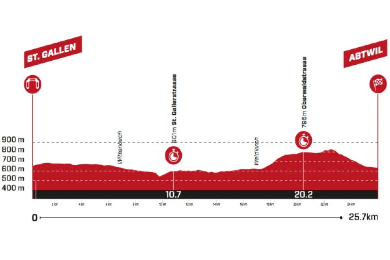 Dimanche 18 juin - étape 8 : Saint-Gall - Abtwil / 25,7 km CLM individuel (départ réel à 13h45, arrivée vers 17h00)
