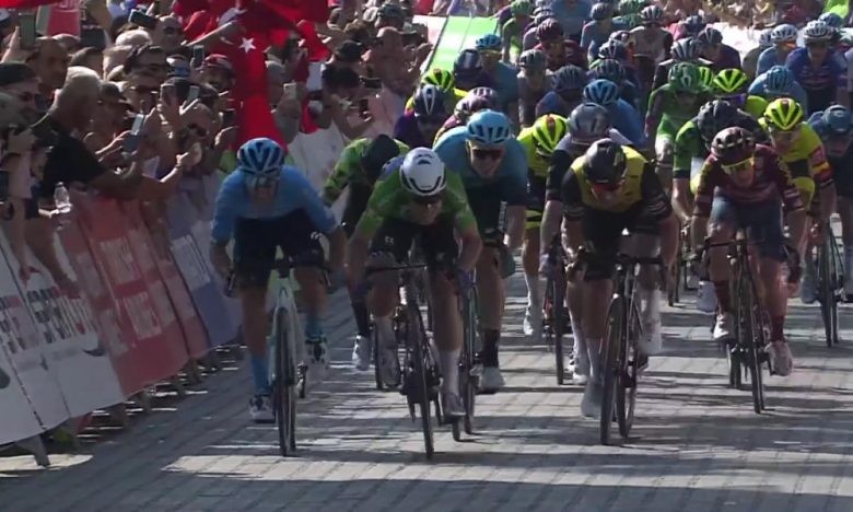 On approche de la seule véritable difficulté du jour, de 3km à 7%, dont le sommet se situe à 11km de l'arrivée. Denz est repris et le rythme s'accélère afin de lâcher les purs sprinteurs. Et c'est au tour du 2e du classement général, Ben Zwiehoff (BORA-hansgrohe) de passer à l'offensive, mais l'Allemand ne fait pas de vrai écart. Tout se regroupe après le sommet et on se dirige vers un sprint entre 70-80 de coureurs. Les principaux hommes rapides sont encore présents et devraient se jouer la gagne. Il manque tout de même des coéquipiers aux sprinteurs et l'approche du final n'est pas très limpide. Jasper Philipsen (Alpecin-Deceuninck) n'est pas bien placé à 300 mètres de la ligne, alors que le sprint se lance. Mais le Belge est très costaud, il remonte tout le monde et vient s'imposer devant Giovanni Lonardi (EOLO-Kometa) et Timothy Dupont (Tarteletto-Isorex). Il remporte là sa 3e étape sur ce Tour de Turquie !