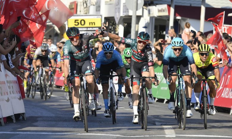 Tour de TurquieNouvelle journée sur ce Tour de Turquie, qui proposait un parcours atypique, avec une première partie montagneuse et une deuxième partie plate. Et sur cette 5e étape ralliant Marmaris à Bodrum sur 180,6 kilomètres, ça s'est finalement joué "au sprint" et c'est Nico Denz qui s'est imposé. Alors qu'il était dans un rôle de lanceur pour Matthew Walls, l'Allemand de la BORA-hansgrohe s'est vu offrir la victoire par son sprinteur, après un dernier kilomètre de dingue. En effet, à 500 mètres de la ligne, le grand favori du jour, Jasper Philipsen (Alpecin-Deceuninck) a chuté, ce qui a complétement désordonné le peloton et a permis aux BORA-hansgrohe de réalisé un doublé, en devançant Cees Bol (Astana Qazaqstan). Au classement général, rien à signaler, Alexey Lutsenko (Astana Qazaqstan) est toujours en tête, 17 et 33 secondes devant Ben Zwiehoff (BORA-hansgrohe) et son coéquipier Harold Tejada (Astana Qazastan).
