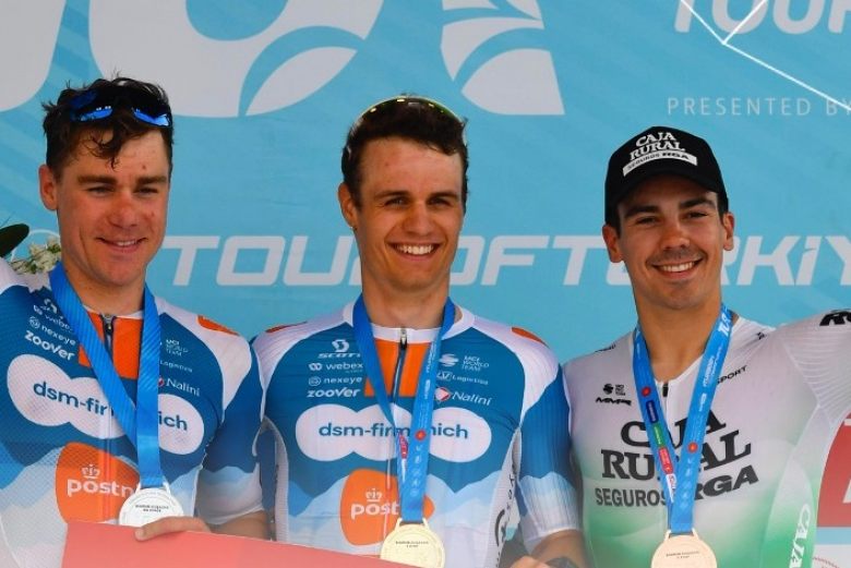 Tour de TurquieTobias Lund Andresen (Team dsm-firmenich Post NL, au centre sur la photo) a remporté la 5e étape du Tour de Turquie ce jeudi. Le Danois a récidivé après avoir levé les bras mercredi. Ce jeudi, il était initialement poisson-pilote d'un Fabio Jakobsen qui n'a jamais pu le dépasser, à l'image de Dorion Godon et d'Andrea Vendrame (Decathlon AG2R La Mondiale Team) mercredi sur le Tour de Romandie. Andresen compte déjà deux succès en Turquie, en plus de porter le maillot de leader du classement général.