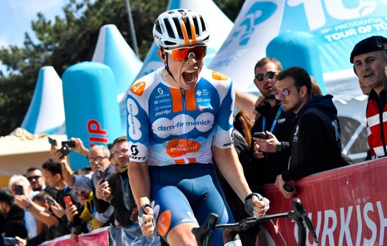 Tour de TurquieC'était l'étape reine du Tour de Turquie 2024 ! Arrivant au sommet de Spil Dagi, à Manisa, la 6e étape a permis aux grimpeurs de s'exprimer enfin pleinement, et au terme des 14 kilomètres d'ascension à 7,1% de moyenne, c'est Frank van den Broek qui a levé les bras, le jeune Néerlandais de 23 ans apportant, après le succès de Fabio Jakobsen dimanche et les deux de Tobias Lund Andresen mercredi et jeudi, la quatrième victoire en six jours à son équipe, le Team dsm-firmenich PostNL ! Sorti du groupe des favoris dans le final en compagnie de l'Érythréen Merhawi Kudus (Terengganu Cycling Team) et du Britannique Paul Double (Team Polti Kometa), le Batave s'est montré plus rapide que Kudus dans les derniers mètres pour décrocher sa deuxième victoire professionnelle.