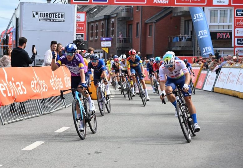 Déjà 5e du sprint massif la veille, le Français de la TotalEnergies confirme sa très bonne forme et échoue de justesse derrière celui qui endosse par la même occasion le maillot orange de leader du classement général avec les bonifications, le Belge Jordi Meeus (Red Bull-BORA-hansgrohe) terminant seulement 23e du sprint final. Un autre coureur tricolore monte sur la dernière marche du podium, et comme lundi, il s'agit de Paul Penhoët (Groupama-FDJ), encore troisième. Dans un premier temps classé 4e, le Belge Timo Kielich (Alpecin-Deceuninck) a finalement été déclassé en dernière position du peloton, soit 50e, certainement pour une manoeuvre jugée dangereuse.