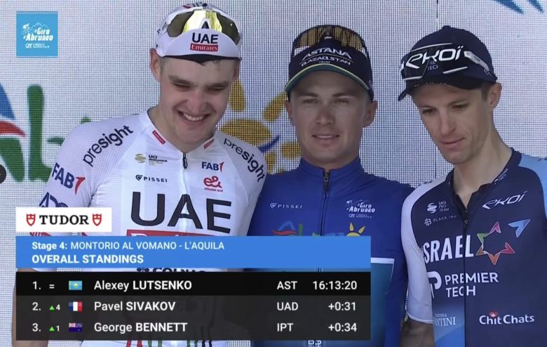 Tour des AbruzzesLa 4e et dernière étape du Tour des Abruzzes se disputait ce vendredi entre Vasto et L'Aquila. Très vallonnée et jalonnée d'une longue ascension située à une cinquantaine de kilomètres de l'arrivée, le Castel del Monte, cette ultime journée de course a été dominée par trois coureurs qui sont sortis du peloton dans le col cité précédemment. Difficile, la bosse d'arrivée a permis à Pavel Sivakov de s'offrir la sixième victoire de sa carrière, la première sous les couleurs de l'équipe UAE Team Emirates. Le Français a facilement pris le dessus sur le Néo-Zélandais George Bennett (Israel-Premier Tech), tandis que le troisième membre du trio, le Kazakh Alexey Lutsenko, assuré d'être sacré, a laissé ses deux compagnons de fugue se jouer la victoire.
