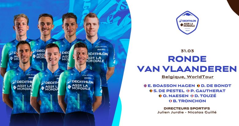 Tour des FlandresEncore une semaine importante pour le pôle Classique chez Decathlon AG2R La Mondiale. Au programme, À travers la Flandre mercredi servira de dernière course de préparation avant le deuxième Monument de la saison ce dimanche, le Tour des Flandres. L'équipe savoyarde a dévoilé ce lundi ses sélections pour les deux épreuves Flandriennes du WorldTour, notamment organisées autour de Pierre Gautherat et d'Oliver Naesen. Le jeune Français de 21 ans a réalisé un début de saison prometteur ponctué d'une belle 11e place sur l'Omloop Het Nieuwsblad. Poursuivant son apprentissage sur ces courses d'un jour pavées, il tentera de s'accrocher pour espérer faire parler sa belle pointe de vitesse au sein d'un petit groupe.