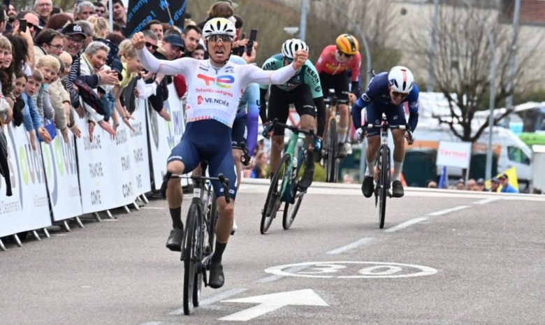 Tour du DoubsLe Triptyque Franc-Comtois prenait fin ce dimanche 20 avril avec son 3e et dernier acte : le Tour du Doubs ! Organisée par le Vélo Club Morteau Montbenoit, cette épreuve faisait office de 8e manche de la Coupe de France FDJ et proposait un parcours vallonné de 197 kilomètres, avec 2800 mètres de dénivelé positif avant d'arriver à Morteau. Contrairement aux deux derniers jours, pas d'arrivée au sommet et donc une course plus débridée et ouverte qui a offert un final à suspense... avec la victoire de Mattéo Vercher ! Membre d'un groupe de sept costauds qui s'est constitué dans les dernières difficultés jusqu'à 15 km de la ligne et qui s'est finalement joué la gagne au sprint, l'ancien champion de France amateur 2022 et coureur de la TotalEnergies s'est montré le plus rapide dans cette arrivée en légère montée pour s'offrir sa toute première victoire chez les professionnels, devant un autre Français Adrien Maire (Unibet Tietema Rockets) et l'Espagnol Ivan Cobo (Equipo Kern Pharma).
