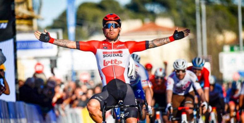 Tour du Haut-VarEn ce début de saison, le sprinteur australien est en forme ! Déjà vainqueur d'une étape sur le Saudi Tour, il y a quelques jours, Caleb Ewan (Lotto-Soudal) a décroché la deuxième victoire de sa saison en remportant la première étape du Tour des Alpes-Maritimes et du Var ce vendredi. Bien épaulé par ses coéquipiers, le natif de Sydney a devancé Anthony Turgis (TotalEnergies) et Nacer Bouhanni (Arkéa-Samsic). "Nous savions que cette étape allait être difficile", explique-t-il à sa formation.