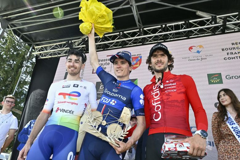 Tour du JuraAprès Lenny Martinez vendredi sur la Classic Grand Besançon Doubs, c'est un autre coureur de la Groupama-FDJ qui a levé les bras ce samedi sur le Tour du Jura Cycliste : David Gaudu ! Plus de vingt-deux mois après sa dernière victoire - une étape sur le Critérium du Dauphiné - le grimpeur breton a enfin retrouvé le chemin du succès. Troisième la veille au sommet de la côte de la Malate, David Gaudu s'est imposé au Mont Poupet avec 4 secondes d'avance sur un quatuor réglé au sprint par Jordan Jegat (TotalEnergies) devant Guillaume Martin (Cofidis), Felix Gall (Decathlon AG2R La Mondiale Team) et Harm Vanhoucke (Lotto Dsnty). Comme l'an passé, le podium est donc 100% français. Pas dans une grande journée, Lenny Martinez n'a même pas fini dans le top 10, le Cannois ayant dû se contenter de la onzième place, à 39 secondes du vainqueur du jour.