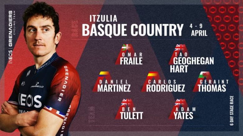 Dans les contreforts des Pyrénées, il n'y a pas de grands cols, mais plein de difficultés mineures et moyennes qui rendent le Tour du Pays basque explosif. Chez INEOS Grenadiers, le leader n'est pas connu d'avance. Ce pourrait être Daniel Martinez, 3e du Tour de l'Algarve et de Paris-Nice. Le champion de Colombie du contre-la-montre a fait de gros progrès dans l'exercice, ce qui lui permettra de largement limiter la casse sur les 8 kilomètres du premier jour. Adam Yates, 2e de l'UAE Tour et 4e de Paris-Nice, sera également un favori pour la victoire finale. Le troisième leader pourrait être l'Espagnol Carlos Rodriguez, 3e du Tour de Valence et 4e du Tour d'Andalousie. La révélation de ce début d'année a toutefois été plus en retrait sur le Tour de Catalogne, qu'il a terminé 15e.