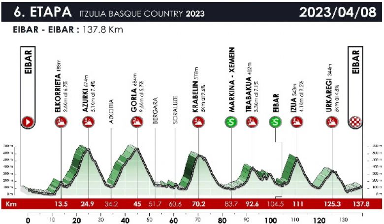 Samedi 8 avril - étape 6 : Eibar - Eibar / 137,8 km (départ réel à 14h03, arrivée vers 17h30)