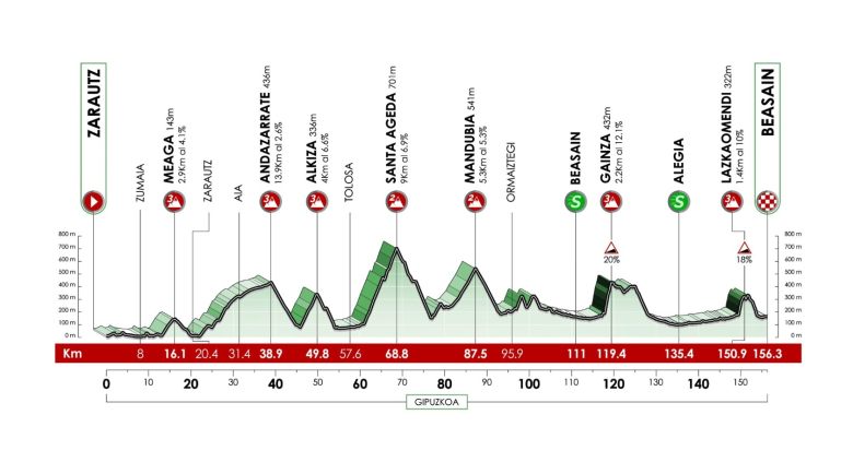 Mercredi 9 avril - Étape 3 : Zarautz - Beasain / 156,3 km (départ 13h27, arrivée vers 17h30)