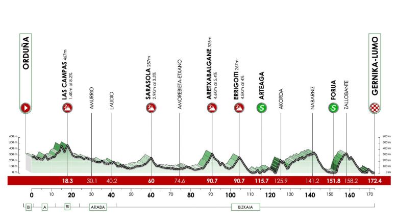 Vendredi 11 avril - Étape 5 : Urduna - Gernika-Lumo / 172,4 km (départ à 13h03, arrivée vers 17h30)