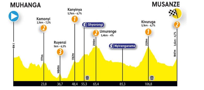 Gicumbi (km 51,7 / 1ère catégorie) : 23,3 km à 3,2%