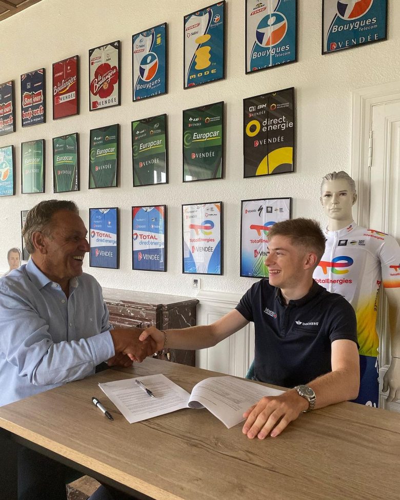 TransfertAprès trois années au sein de l'équipe Vendée U Pays de la Loire, il est temps pour Baptiste Vadic de rejoindre les rangs professionnels. C'est ce qu'a annoncé le Team Total Energies ce mercredi, alors que vient d'ouvrir la période des transferts. Formé en Juniors chez Creuse Oxygène Guéret avant de rejoindre en 2021 l'équipe de formation du Team Total Energies, qu'il intègrera dès janvier prochain et ce pour deux ans, Baptiste Vadic a remporté à seulement 21 ans le Circuit de l'Essor, le Chrono 47 - manche de la Coupe de France N1 - et une étape de la Ronde de l'Oise et du Tour de la Mirabelle.