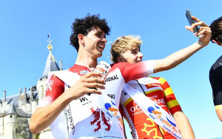 Trophée MadiotAlban Picard (CC Marmande), le champion de Nouvelle Aquitaine sur route, a ajouté un seizième bouquet à son palmarès 2024 – il mène le tableau des victoires de la saison cadets en France – et non des moindres puisqu’il s’agit de sa première sur le Trophée Madiot-Crédit Mutuel. La 6e manche à Saumur (Maine-et-Loire) a réuni devant le somptueux château surplombant la Loire un fameux plateau de 175 partants parmi lesquels une écrasante majorité des plus forts de la catégorie dans le pays, et elle s’est déroulée sur le tracé le plus sélectif jamais proposé par le Trophée en 21 éditions, incluant sept ascensions de la montée de l’église de Dompierre et trois fois la rue Chèvre qui présente des pentes à 15%.