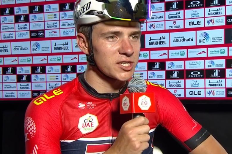 UAE TourAprès trois journées très intenses sur cet UAE Tour, Remco Evenepoel a vécu une 4e étape plus tranquille. Le Champion du Monde a pour la première fois porté le maillot rouge de leader ce jeudi et est resté bien au chaud dans le peloton, même si son équipe Soudal-Quick Step a essayé d'aller chercher la victoire avec Tim Merlier. "Bien sûr on a essayé de gagner avec Tim", déclare Evenepoel à l'arrivée. "Mais c'est plutôt clair que maintenant que j'ai le maillot de leader je ne vais pas prendre de risque en lançant le sprint. Il faut que je fasse attention, j'ai suivi la roue de Tim jusqu'à deux ou trois kilomètres de l'arrivée, puis j'ai lâché parce que ça devenait très tendu."
