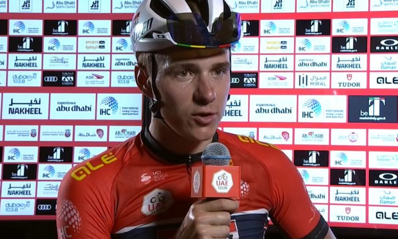 Mais chose rare sur cet UAE Tour, nous avons vu Remco Evenepoel rouler dans les trois derniers kilomètres pour son sprinteur Tim Merlier. "On savait qu'il y avait une chicane serrée à 1,9 km de l'arrivée, on voulait l'aborder en première position, parce que s'il y avait une chute, elle aurait été importante", explique le Belge. "De rouler un petit peu à ce moment, ce n'était pas trop me demander, ce n'était pas dans le plan mais j'avais les jambes pour emmener les gars jusqu'à 1,5km de l'arrivée. Et là, je me suis laissé redescendre pour arriver en sécurité et j'ai vu le beau maillot vert (Tim Merlier, ndlr) lever les bras." Evenepoel est désormais tourné vers la journée de demain et l'arrivée au sommet du Jebel Hafeet. "Pour moi ça serait bien de gagner cette course, j'ai déjà dit cet hiver que je voulais être en bonne condition ici, on va essayer de défendre ce maillot et pourquoi pas essayer de remporter l'étape demain."